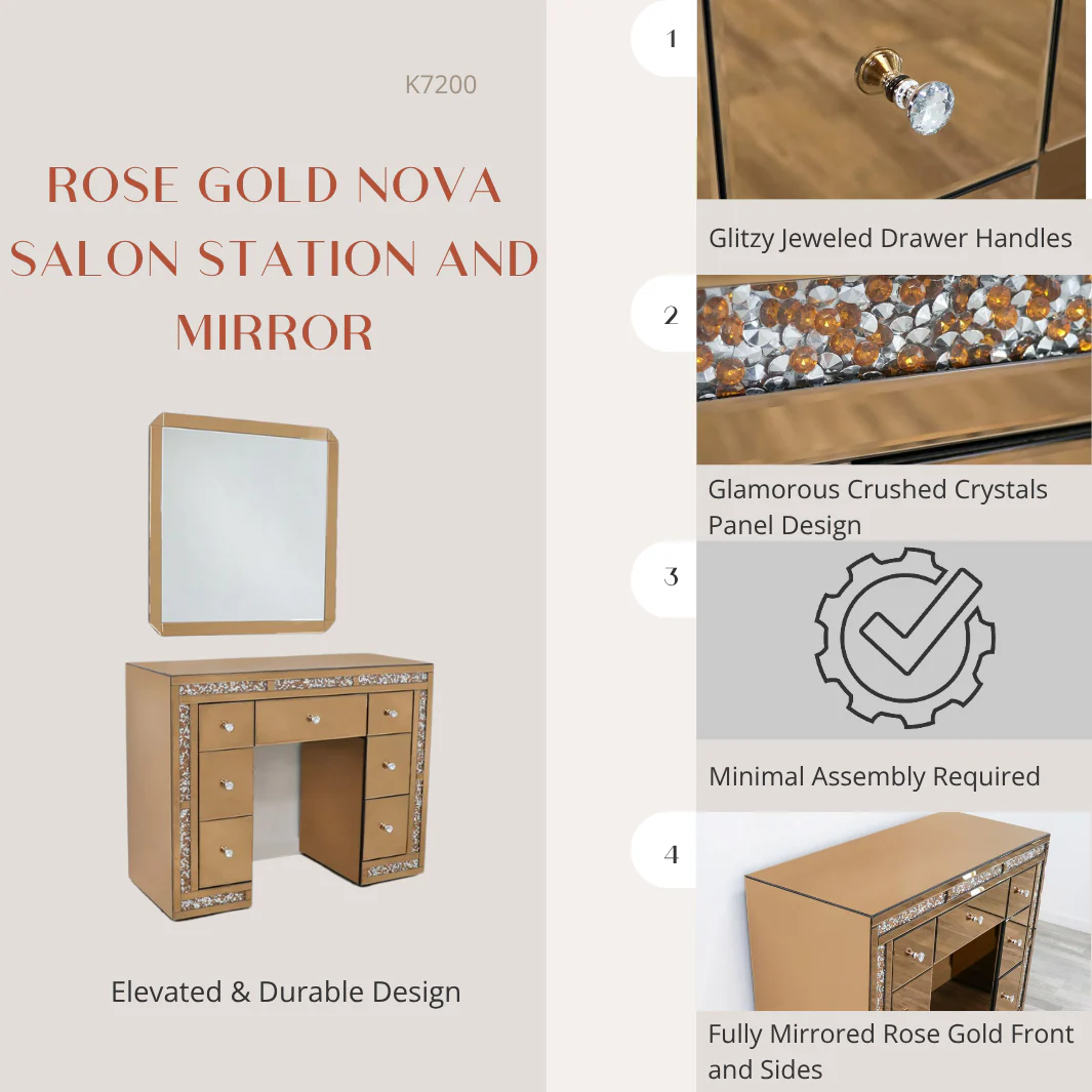 Rose Gold Nova Salon Station and Mirror
